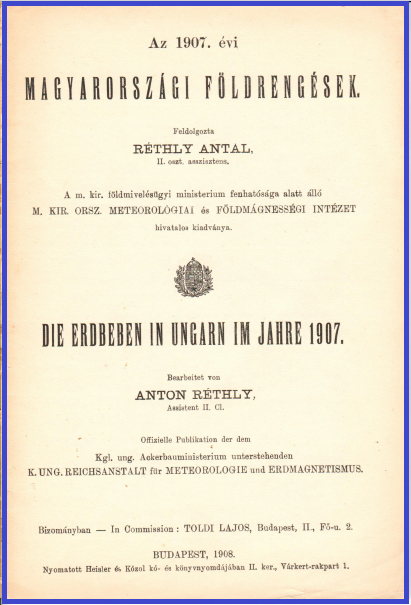 1908 Réthly A. (1908). Jelentés az 1908. évben Magyarországon észlelt földrengésekről, M. Kir. Orsz. Meteorológiai és Földmágnességi Intézet, Budapest, 20 old