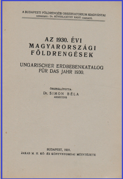 1930 Simon B. (1931). Az 1930. évi magyarországi földrengések, Budapesti Földrengési Obszervatórium, Budapest, 21 old.
