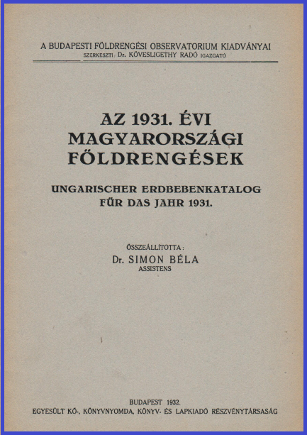 1931 Simon B. (1932). Az 1931. évi magyarországi földrengések, Budapesti Földrengési Obszervatórium, Budapest, 13 old.