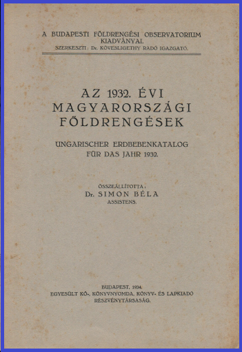 1932 Simon B. (1934). Az 1932. évi magyarországi földrengések, Budapesti Földrengési Obszervatórium, Budapest, 6 old.