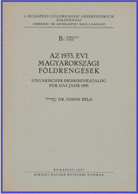 1933 Simon B. (1937). Az 1933. évi magyarországi földrengések, Budapesti Földrengési Obszervatórium, Budapest, 7 old.