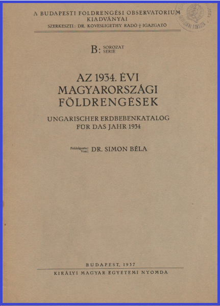1934 Simon B. (1937). Az 1934. évi magyarországi földrengések, Budapesti Földrengési Obszervatórium, Budapest, 12 old.