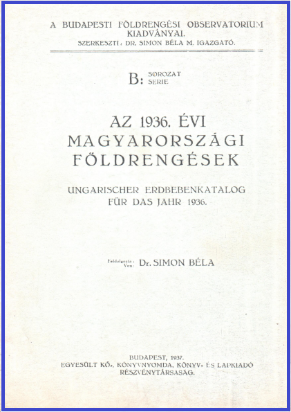 1936 Simon B. (1937). Az 1936. évi magyarországi földrengések, Budapesti Földrengési Obszervatórium, Budapest, 7 old.