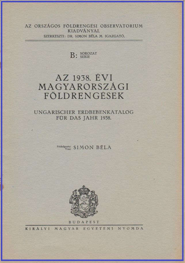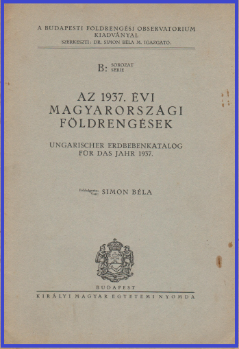 1937 Simon B. Az 1937. évi magyarországi földrengések, Budapesti Földrengési Obszervatórium, Budapest, 9 old.