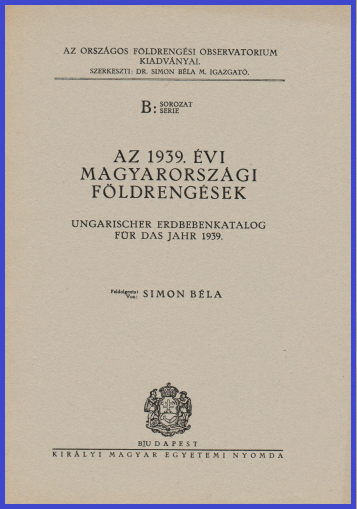 1939 Simon B. (?) Az 1939. évi magyarországi földrengések, Országos Földrengési Obszervatórium, Budapest, 12 old.
