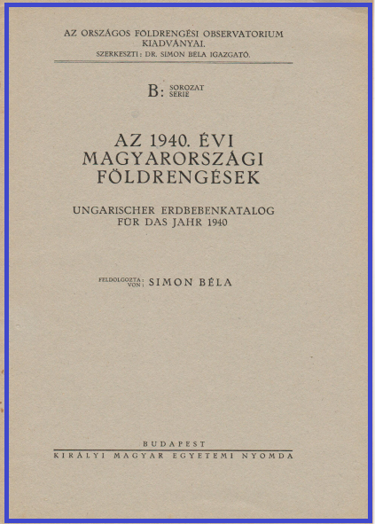 1940 Simon B. (?) Az 1940. évi magyarországi földrengések, Országos Földrengési Obszervatórium, Budapest, 16 old.