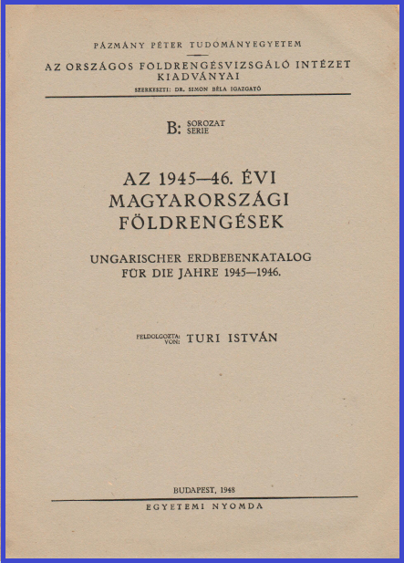 1945 Turi I. (1948). Az 1945-46. évi magyarországi földrengések, Országos Földrengésvizsgáló Intézet, Budapest, 8 old.