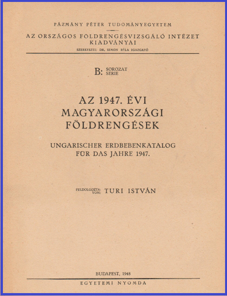 1947 Turi I. (1948). Az 1947. évi magyarországi földrengések, Országos Földrengésvizsgáló Intézet, Budapest, 6 old.