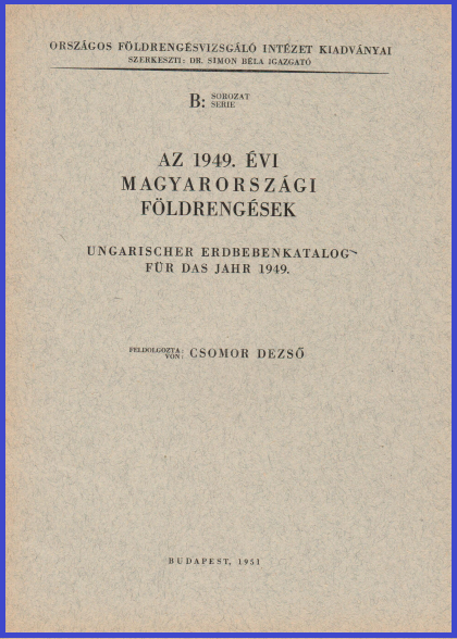 1949 Csomor D. (1951). Az 1949. évi magyarországi földrengések, Országos Földrengésvizsgáló Intézet, Budapest, 5 old.