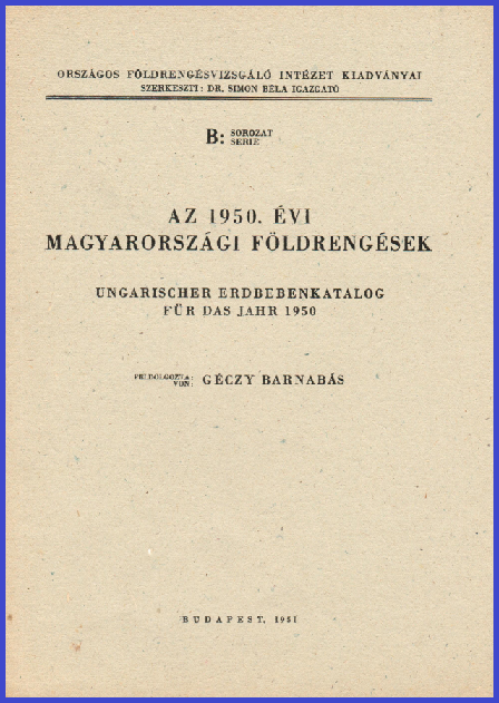 1950 Géczy B. (1951). Az 1950. évi magyarországi földrengések, Országos Földrengésvizsgáló Intézet, Budapest, 6 old.