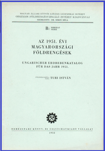 1951 Turi I. (1952). Az 1951. évi magyarországi földrengések, Országos Földrengésvizsgáló Intézet, Budapest, 9 old.