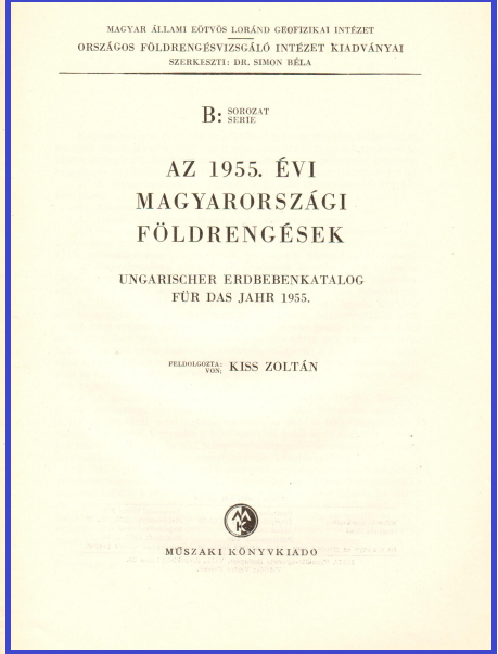 1955 Kiss Z. (1957). Az 1955. évi magyarországi földrengések, Országos Földrengésvizsgáló Intézet, Budapest, 35 old.