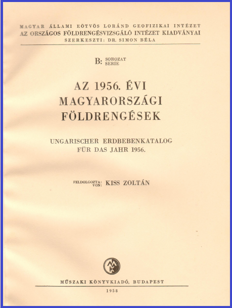 1956 Kiss Z. (1958). Az 1956. évi magyarországi földrengések, Országos Földrengésvizsgáló Intézet, Budapest, 35 old.