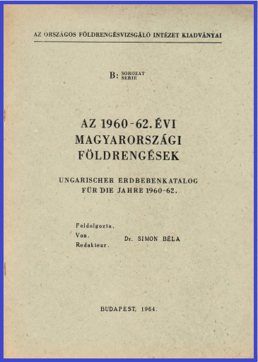 Simon B. (1964). Az 1960-62. évi magyarországi földrengések, Országos Földrengésvizsgáló Intézet, Budapest, 8 old.