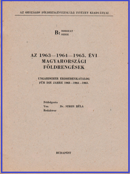 Simon B. (1967). Az 1963-65. évi magyarországi földrengések, Országos Földrengésvizsgáló Intézet, Budapest, 8 old.