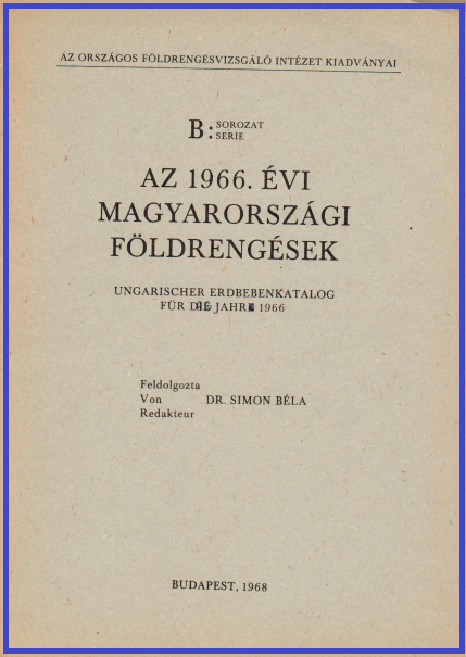 1966 Simon B. (1968). Az 1966. évi magyarországi földrengések, Országos Földrengésvizsgáló Intézet, Budapest, 6 old.