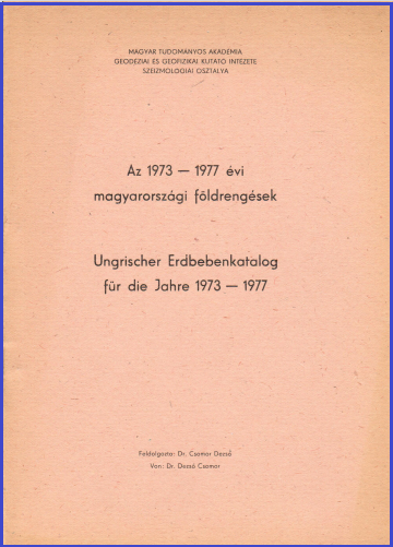 Csomor D. (?) Az 1973-77. évi magyarországi földrengések, MTA Geodéziai és Geofizikai Kutató Intézet, Budapest, 14 old.